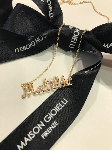 Collana Nome a Filo - Oro 9kt e diamantino 0,03